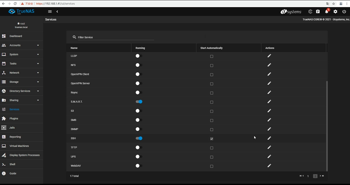 3.接下来打开左侧的服务,找到SSH选项,启用并勾选,最后打开右侧的设置