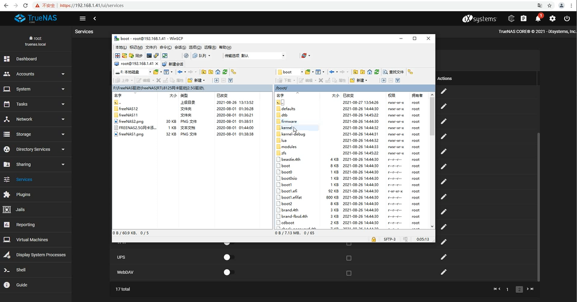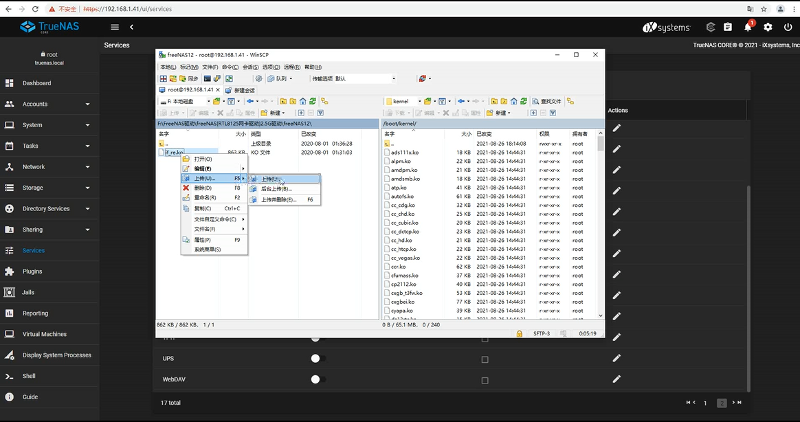 9.右侧选择FreeNAS的驱动文件右键上传到kernel